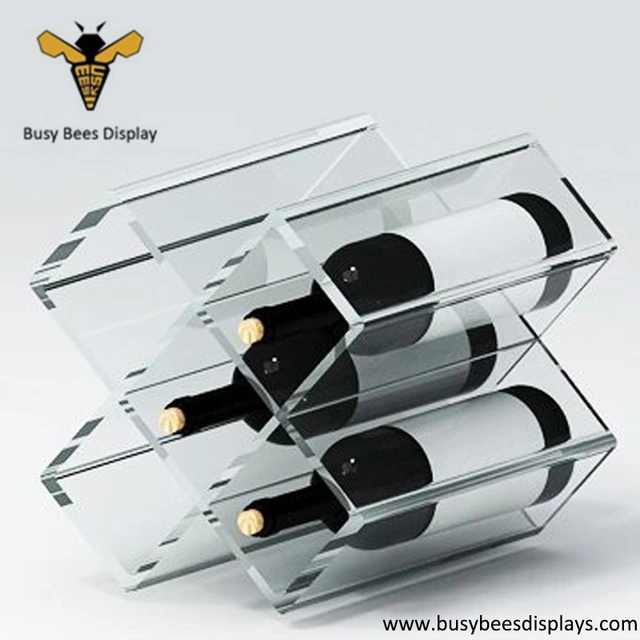 Xiamen 5 bottle acrylic wine display, wine rack, and wine display stand for sale with your own size, color and thickness.