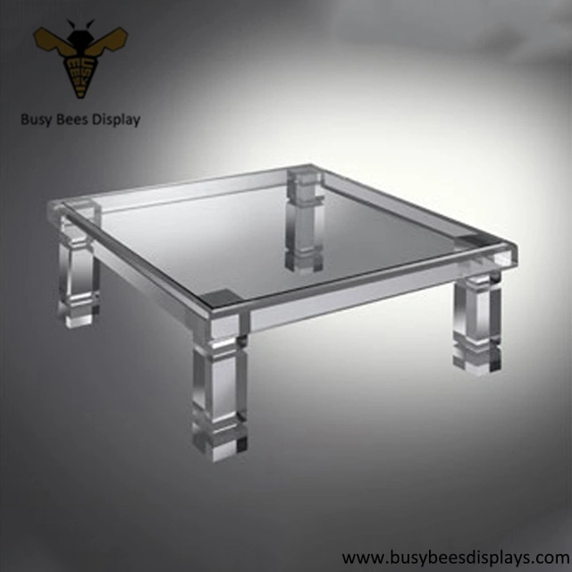 Acrylic square table, chair and table stand for sale by factory with custom design style.