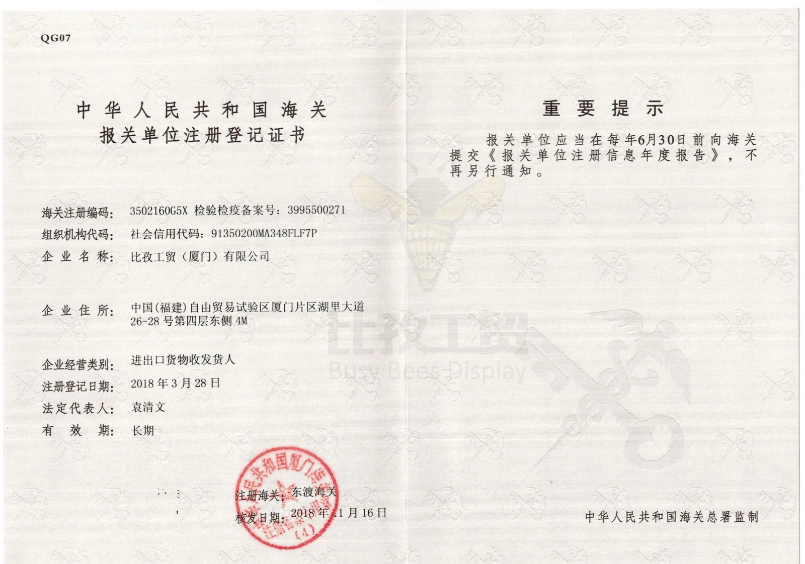 Registration Form of Customs Declaration Agency
