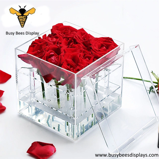 Custom design acrylic rose stand, vase box display by factory with your own size, color and thickness!