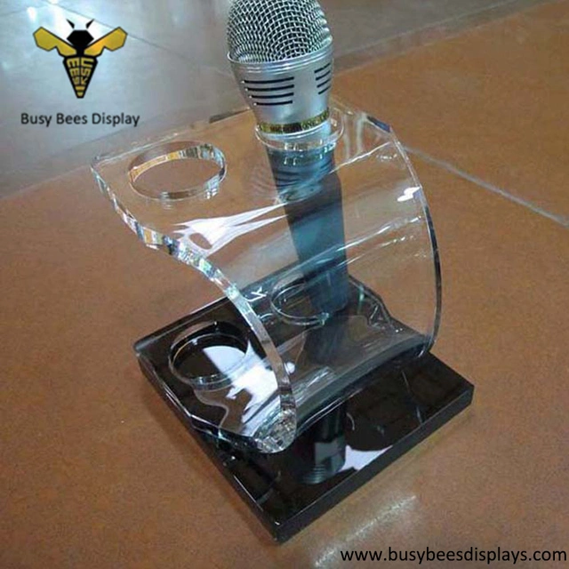 Hot sale acrylic microphone, voice tube holder display stand by manufacture with custom design size, color and thickness.
