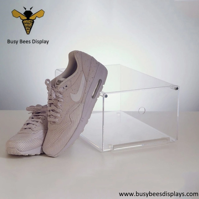 Wholesale clear acrylic plexiglass shoes box with drawer manufacture can supply the custom design style products with size, thickness and color.
