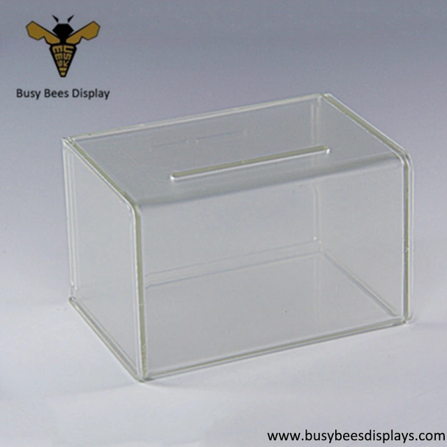 Wholesale perspex suggestion box and coin donation containers for sale by manufacture with your own size, color and thickness.